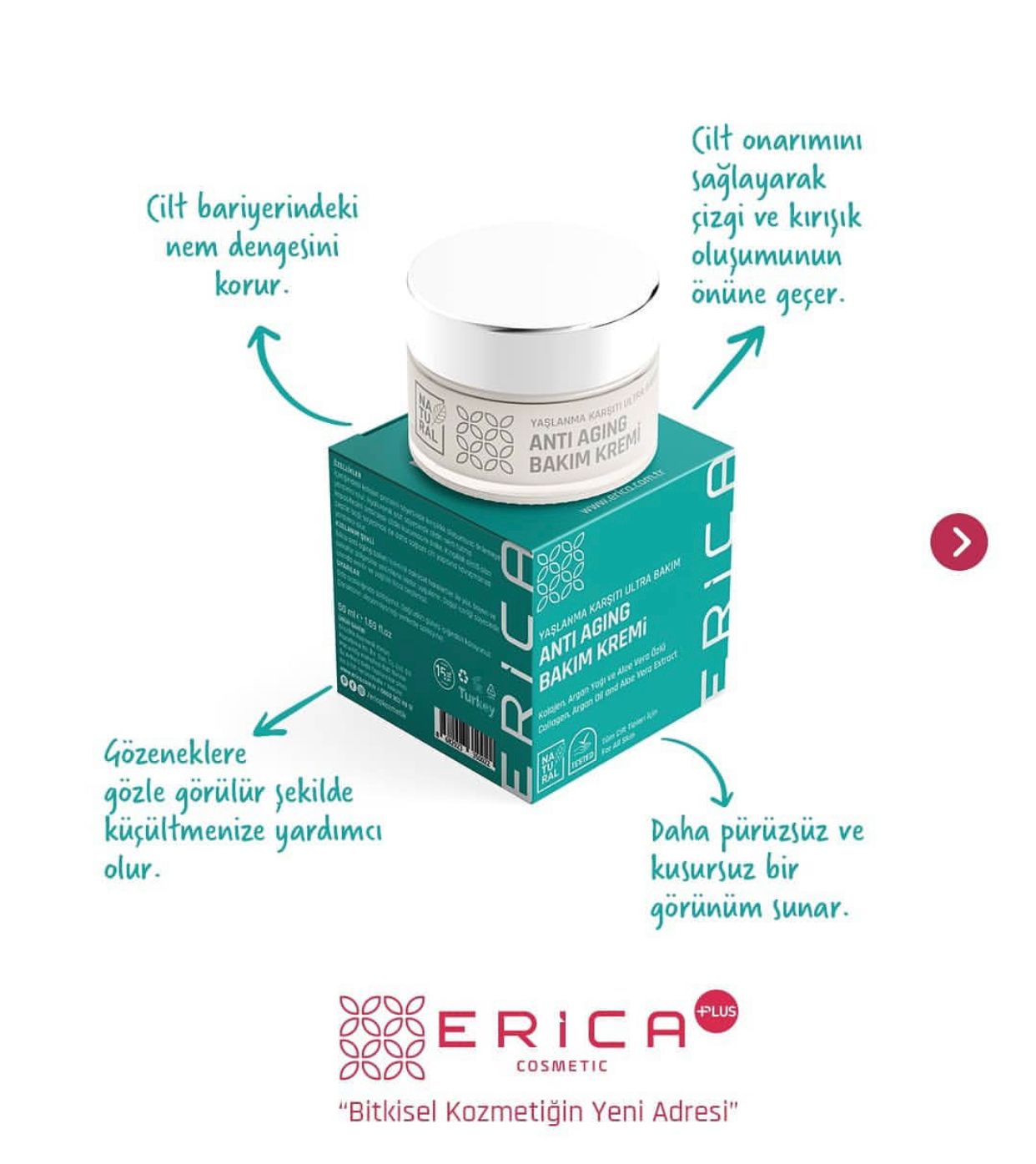 Her cilt tipine uygun olarak geliştirilen Erica Anti Aging bakım kremi ile kırışık